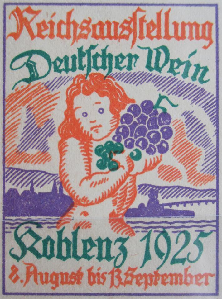 Everywhere in Germany the thousand-year alliance of the Rhineland with the German Reich is celebrated. The first “Imperial German Wine Exhibition” takes place in Koblenz under the eyes of the French. Franz-Josef Lichtenberg, a graphic artist from Cologne, designs a stylized imperial eagle with a cluster of grapes, as a breastplate for an advertising poster.