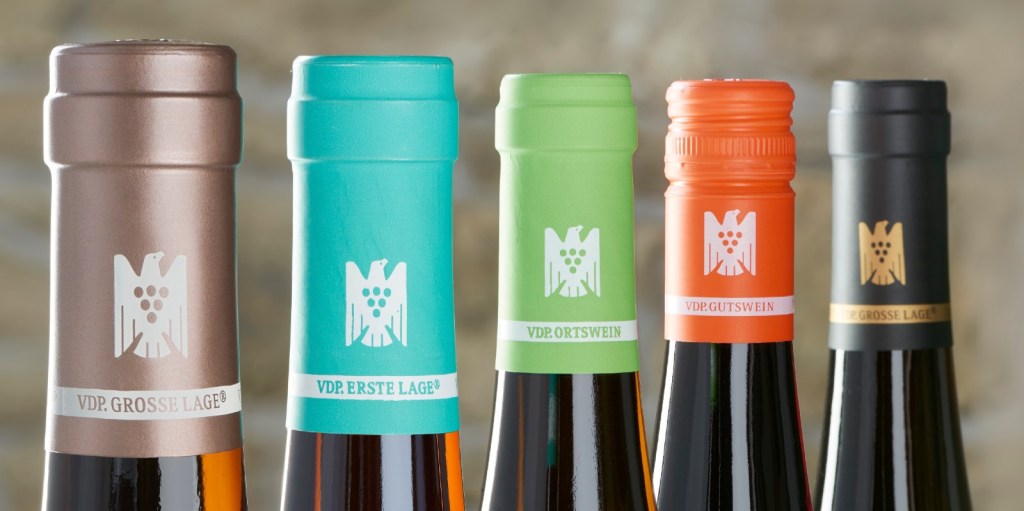 In this case, the word “orts” means “place,” so these are wines with an indication of the municipality or village of their birth. These wines transmit the typicity or terroir of their municipality’s vineyards. In fact, they might even include grapes from vineyards classified as VDP.ERSTE LAGE® (premier cru) or VDP.GROSSE LAGE® (grand cru). These wines are produced from grape varieties typical of the region, and the yield may not exceed 75 hectoliters per hectare. Dry wines are identified by the phrase “Qualitätswein trocken” (quality dry wine). The Prädikatsweine (wines with special attributes) carry the traditional terms: Kabinett, Spätlese, Auslese, etc. You can find more information here. Apart from the label, the bottle’s capsule may also show the phrase “VDP.ORTSWEIN”.